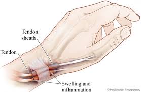 A kéz, csukló és ritkábban a bokaízület en nem ritka az ínhüvely gyulladás kialakulása. Kezünk néha igen erős igénybevételnek, megerőltetésnek van kitéve, vagy az egész nap egyforma mozdulatokat végző csukló, ujjak inai terhelődnek túl (pl. gépírók esetében). Ilyen esetben az inat körülvevő védőburok, az ínhüvely begyulladhat. Ez nem kórokozók által kiváltott gyulladás, hanem steril izgalmi állapot. A csukló vagy az érintett ujjak mozgatásakor ilyenkor erős, éles, hasító fájdalom jelentkezik.
